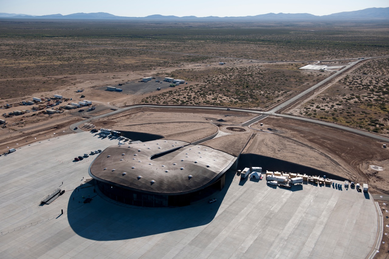 Afbeeldingen van minuscuul gele spaceshuttles, geplakt op verkeersborden, wijzen de weg naar het eind oktober geopende bouwwerk van 216 miljoen euro, diep in de Jornanda del Muerto-woestijn. Daar weerspiegelt het zandkleurige landschap, bedekt met een dun laagje sneeuw, in de glazen wand. Een kijkje nemen achter de imposante schuifbare stalen panelen, waar in de toekomst de ruimtevaartuigen van huurder Virgin Galactic komen te staan, is streng verboden. Volgens David Wilson, woordvoerder van de ruimtehaven, wenst het ruimtevaartbedrijf van miljardair Richard Branson geen pottenkijkers.