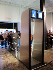 Het is niet echt, maar kunst. Nederlandse kunst om precies te zijn, van Marnix de Nijs. En het publiek in Pittsburgh reageert precies zoals hij dat wil. ,,Ik wil mensen bewust maken van de invloed van technologie in het dagelijks leven. Zonder erbij na te denken gaan ze door de beveiligingspoortjes op vliegvelden. En hier doen ze precies hetzelfde. Ze weten niet wat hen te wachten staat, maar toch lopen ze erdoorheen.”