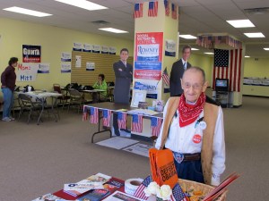 (GPD) – Charlie is 87. Tanden heeft hij niet meer, en horen lukt ook niet zo goed. Dat deert niet, want Charlie mag dan nutteloos zijn om in het Republikeinse kantoortje in ‘swing state’ New Hampshire per telefoon kiezers over te halen op Mitt Romney te stemmen, maar campagneborden voor in de tuin uitdelen kan hij als de beste. Dus doet hij dat. Zes dagen per week, want ‘op zondag zitten we dicht’.